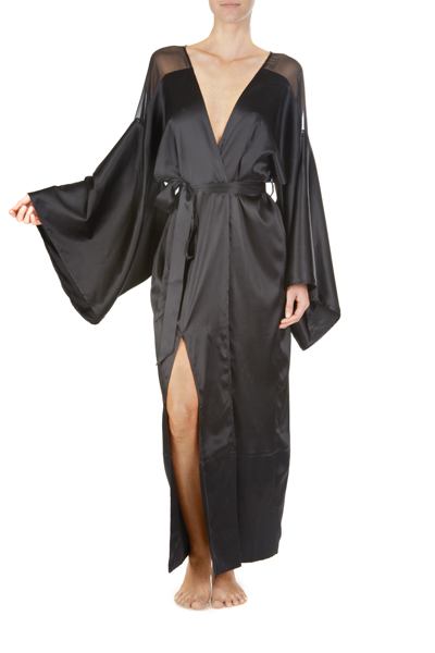 Der Maxi-Morgenmantel Felies aus leichter, elastischer Seide ist ein Must-Have. Er trägt sich wunderbar leicht und verleiht durch seine durchdachte Nahtführung eine besondere Eleganz. Besondere Details sind der weite Kimonoärmel sowie die Schulter- und Rückenpasse aus transparenter Georgette-Seide.